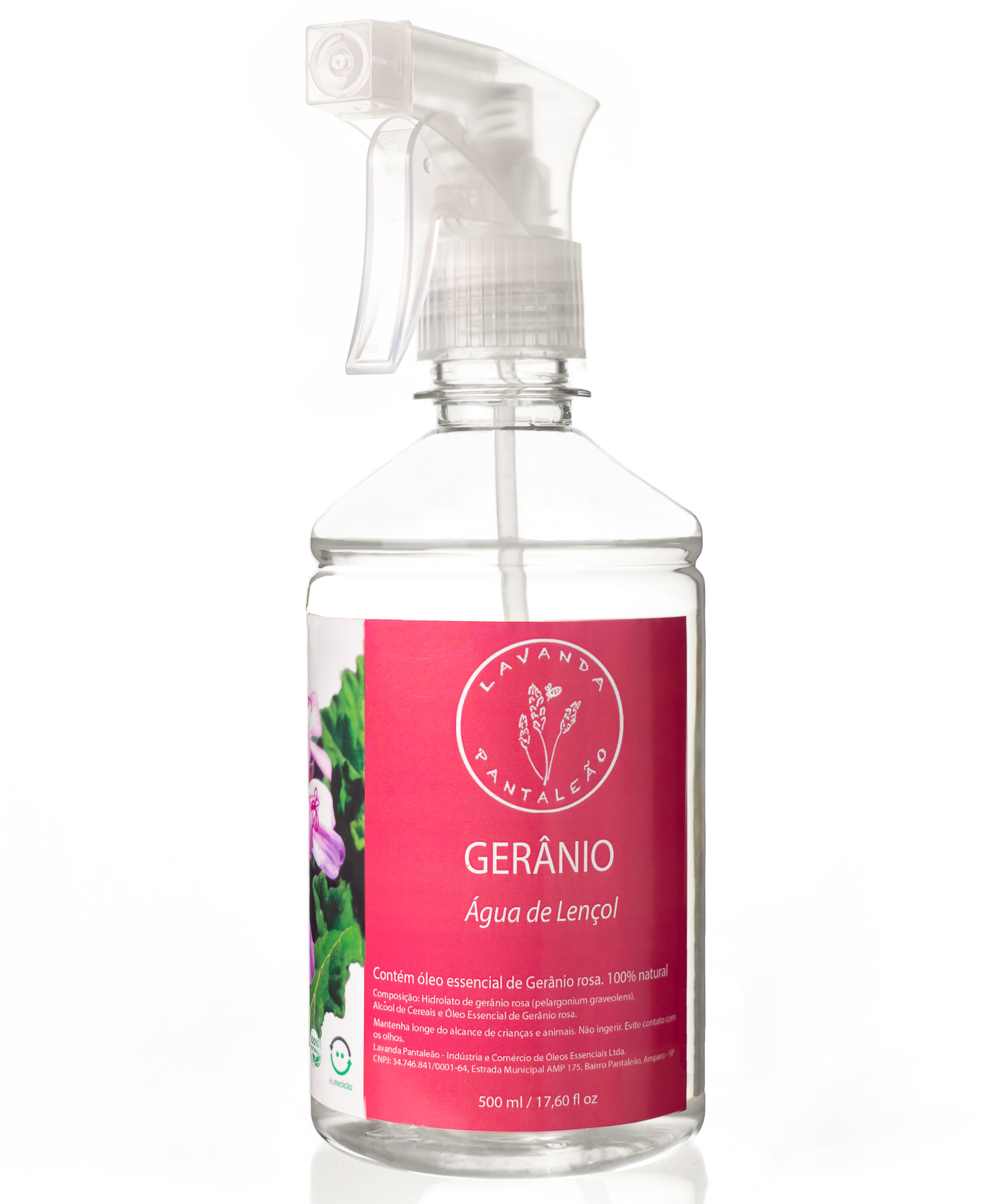 Elaborada com óleo essencial e água floral de Gerânio (Pelargonium graveolens). É um produto 100% natural, criado para proporcionar uma sensação de aconchego e bem estar, com um aroma floral e delicado.